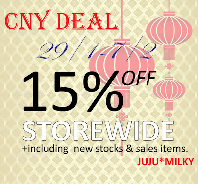 JUJU*MILKY is having CNY deal 15% off STOREWIDE from 29/1-7/2.